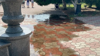 В Керчи 23 августа фонтан в сквере Мира затопил пешеходную зону. Это случилось из-за того, что напор воды слишком велик и она вытекает из фонтана, - передает Керчь.ФМ