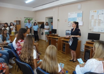 Также на мероприятии присутствовала представитель кадрового аппарата УМВД. С целью популяризации профессии полицейского специалист отделения кадров отдела по работе с личным составом Наталия Лукьяненко провела для родителей и детей профориентационный ликбез на тему: «Я б в полицию пошел. Пусть меня научат!». Наталия Валериевна отметила, что рано или поздно каждый школьник сталкивается с вопросом «Кем я хочу быть?». Так как разобраться в себе и понять, что интересно, а что - не очень, порой, бывает сложно, профориентационные беседы способны помочь ребенку разобраться в своих предпочтениях и решить, куда двигаться дальше. В связи с этим представитель кадрового подразделения рассказала присутствующим о возможности получения профильного юридического образования в Краснодарском университете МВД России и его Крымском филиале, а также о преимуществах прохождения службы в рядах сотрудников органов внутренних дел.
