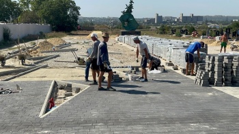 Укладывают плитку, работы идут активно. Специалистам предстоит еще установить светильники и высадить деревья, - передает Керчь.ФМ.