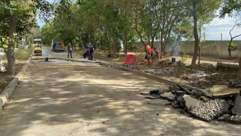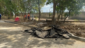 Так, с утра 7 сентября активный работы идут на месте, где появилась траншея из-за замены трубы. Здесь уже аккуратно вырезали края и засыпали щебень в яму. После этих работ обещают восстановить и другие участки на этой улице, которые пришлось вскрывать из-за порывов водовода.