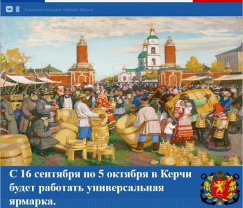 С 16 сентября по 5 октября в Керчи будет работать универсальная ярмарка. Об этом сообщает пресс-служба администрации Керчи, - передает  Керчь.ФМ.