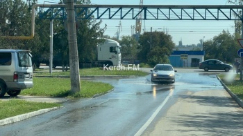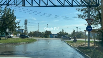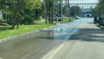 Вода напором стекала на Камыш-Бурунское шоссе.