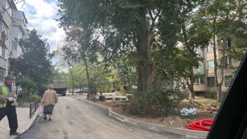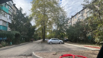 В Керчи продолжается реконструкция дворов на Вокзальном шоссе, 43, 45, 47 и 49. С помощью спецтехники рабочие уже уложили асфальт.