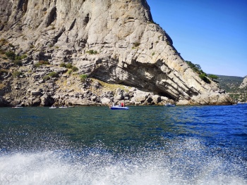 Для тех, кто под страхом смертной казни не желает возвращаться по тропе есть вариант вернуться к цивилизации комфортно и красиво. За 400 рублей с человека и за 2 минуты от пляжа до причала Нового Света доставят капитаны катеров. Маленькие и юркие они один за другим привозят и отвозят желающих.