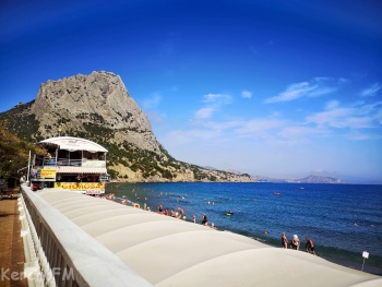 В самом Новом Свете есть песчаный пляж похожий на керченский. Там, в отличие от привычного черноморского берега, до глубины нужно еще дойти, поэтому на мелководье вода быстрее прогревается, хотя и быстрее остывает. Вся набережная усыпана кафешками с астрономическими ценами, но пройтись один раз до конца и запечатлеть себя на фоне «запорожца» из кинофильма «3 + 2» и горы Сокол под шапкой облаков, стоит.