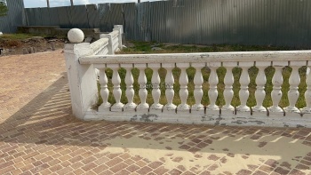 Так, рабочие уложили плитку на дорожках, которые ранее не доделали, а также на площадке у балюстрады. На этой площадке оставили место для двух клумб, а также не тронули дерево, растущее над памятником. Место для памятника также оставили свободным. Саму балюстраду не тронули, видимо, хотят реставрировать, чему рады местные жители.