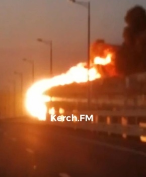 Советник главы Крыма Олег крючков в своем телеграмм канале сообщил. что на Крымском мосту горит цистерна с топливом. - передает Керчь.ФМ