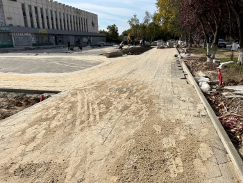 Активно продолжаются работы у Дворца Спорта - здесь укладывают плитку.