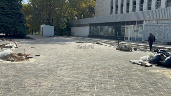 В Керчи у ДК «Корабел» подходит к завершению благоустройство. Так, активные работы идут у нового фонтана - рабочие настраивают его, уже были проведены первые пуски.