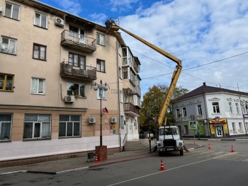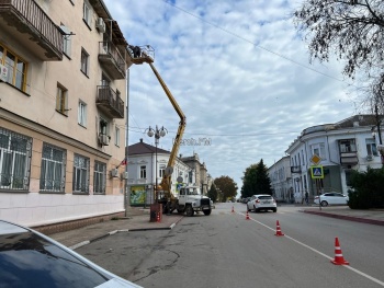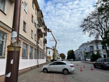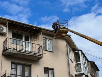 В Керчи продолжается ремонт дома по Дубинина_Советской. На место пригнали автовышку с помощью которой рабочие устанавливают ливневку на крыше, - передает Керчь.ФМ.