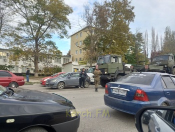 Напротив КРЭСа военный грузовик догнал легковой автомобиль. На месте, понятное дело, виновный решить вопрос с пострадавшим не может. Водители ожидают правоохранителей. Правая сторона теперь стоит еще и по этой причине.