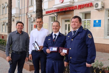 Также за многолетний добросовестный труд на железнодорожном транспорте, весомый личный вклад в развитие предприятия, высокое профессиональное мастерство, проявленную инициативу при ликвидации последствий чрезвычайной ситуации именными часами генерального директора ФГУП «КЖД» награждены Андрей Васиков, бригадир Керченской дистанции пути, Николай Ремизов, монтер пути Керченской дистанции пути, Татьяна Шинкаренко, ведущий специалист по управлению персоналом Дистанции по эксплуатации и ремонту путевых машин.