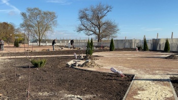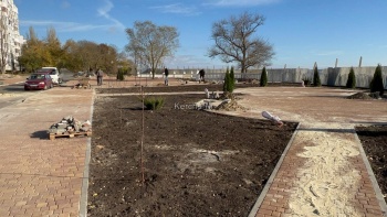 У балюстрады произошло зонирование территории. В дальнейшем здесь появятся лавочки.