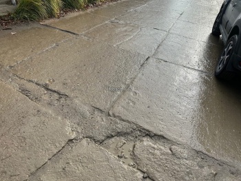 В Керчи из-за замены водовода керчане не первый месяц ходят по тротуарам, где пыль из-за снятой плитки и окопов, сменила грязь после дождей. Грязно все - и дорога, и прилегающие территории, - передает Керчь.ФМ.