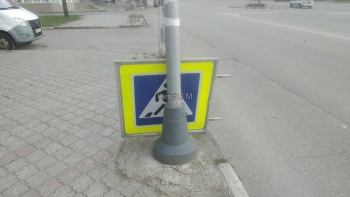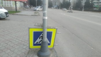 Еще один дорожный знак в Керчи не пережил встречу с ветром