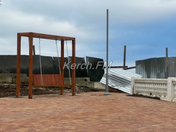 У балюстрады установили новые скамейки и подвесные качели, которые раскачивает пока только ветер.