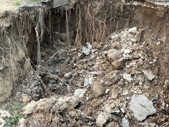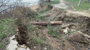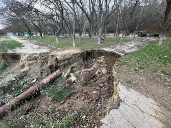 Из-за этого обвалилась еще одна часть дороги, которая вела к зоне отдыха к морю. Оползень растет с каждыми осадками, и люди боятся, что такими темпами к началу сезона от зоны отдыха ничего не останется.