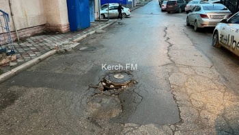 В Керчи на улице Театральной снова проваливается участок дороги. Около люка образовалась дыра и сильно просела дорога. Керчане опасаются, что в любой момент может провалиться дорога, ведь там часто ездят грузовые машины, - передает Керчь.ФМ