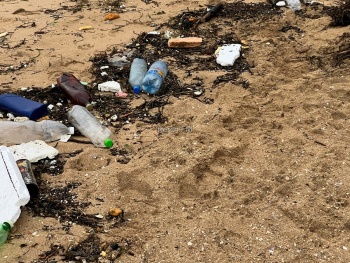 В Керчи на пляже в Аршинцево береговая полоса усеяна пластиком - шторма возвращают все то, что туристы не удосужились убрать за собой, - передает Керчь.ФМ.