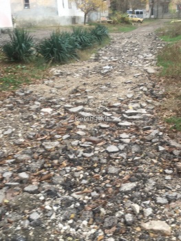 «Здравствуйте редакция! По улице Воинов интернационалистов ремонт дороги, это все очень хорошо, но вот только что рабочие сделали во дворе по улице Капитана Алиева, 17, это уже не в какие ворота не лезет… они засыпали подъезд к дому бутом и оставили, на вопрос будут ли они асфальтировать- они ответили, что нет! Машина подъехать к подъезду не может, мамочкам с колясками приходится нести коляски на руках, вечером вообще можно голову свернуть. Обращались в администрацию города, но там нам посоветовали заасфальтировать двор за свой счёт, мол этот участок не относится к администрации (за то штрафы за парковку сразу администрация выписывает, в этом случае к ней относится)», - говорится в сообщении.