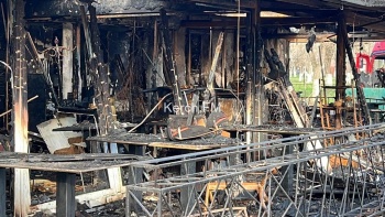 Огонь уничтожил все в здании кафе на первом этаже. От огня пострадали и квартиры выше, в них лопнули окна, сгорели кондиционеры, часть здания черная.