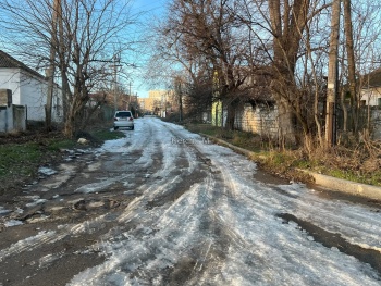 В Керчи в нескольких местах дорога по улице Колхозной заледенела. Где-то каток, где-то снежное месиво - все из-за порывов водовода на прилегающих улицах, - передает Керчь.ФМ.