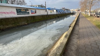 Речку Мелек-Чесме в Керчи покрыла белая пленка с вонючим запахом