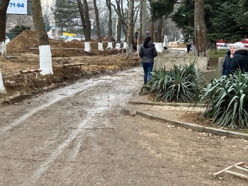 В Керчи замена водовода лишила жителей района «Института» нормального прохода к остановке и магазинам. Люди прыгают через бетонные блоки либо топчут клумбы, потому что пешеходная дорожку полностью перерыта, а дорога рядом превратилась в грязевое не просыхающее месиво, - передает Керчь.ФМ.