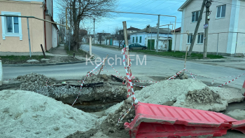 В Керчи на пересечении улиц Шевякова и Фрунзе водоканал оставил очередную яму на дороге. Об этом в редакцию Керчь.ФМ сообщили жители района. Для устранения течи рабочие подняли новый асфальт. Яму частично закопали, в нее воткнули палки с сигнальной лентой. Также поставили вокруг пластиковые барьеры