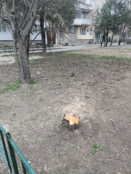 В редакцию Керчь.ФМ обратился постоянный читатель с жалобой на работу коммунальщиков, которые непонятно зачем спилили молодое дерево посреди клумбы, а вот сухие деревья и те, что мешают, остались нетронутыми.