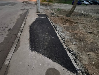 В Керчи за домом по Орджоникидзе, 120 водоканала неоднократно проводил работы, из-за этого пришлось вскрывать новую пешеходную дорожку. И вот, наконец, в этом месте проявился асфальт, - передает Керчь.ФМ. Назвать работу качественной сложно, но это лучше ямы посредине