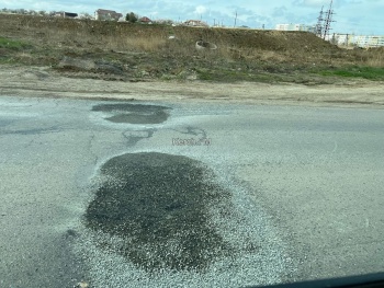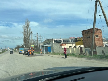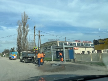 В Керчи 7 апреля на АТП -Нижнем Солнечном рабочие кладут асфальт в ямы и просевшие участки дороги, передает Керчь.ФМ.