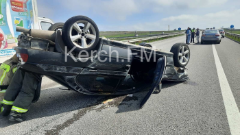 На трассе «Таврида» в ДТП перевернулась иномарка