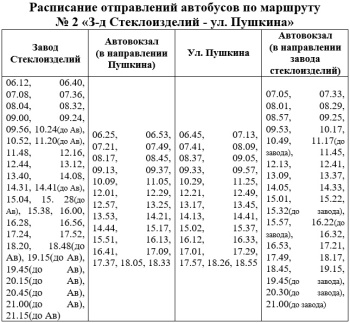 В Керчи связи с добавлением дополнительных машин на маршруты № 2 «Завод Стеклоизделий - ул. Пушкина» и № 3 «Завод Стеклоизделий - Сильпо», с 18 апреля указанные маршруты будут осуществлять перевозку пассажиров по новым графикам. Об этом сообщает пресс-служба администрации Керчи, - передает Керчь.ФМ.