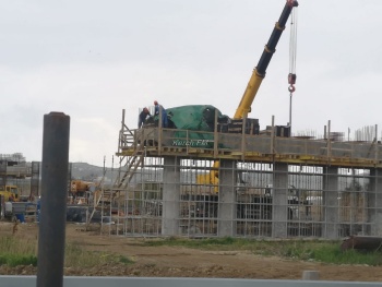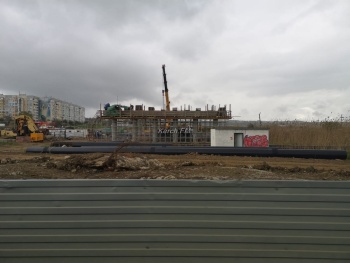 Несмотря на дождь, праздник и выходной, рабочие  продолжают строительство транспортной развязки через Буденного, - передает  Керчь.ФМ.