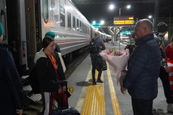 На перроне станции «Керчь-Южная» землячку встретил первый заместитель главы администрации Олег Шевченко, родители, тренер и коллектив самбистов.