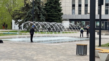 Но желающие разных возрастов резвятся под струями воды фонтана, некоторые дети в одежде встают под воду, а некоторые раздеваются и разуваются. Неравнодушные прохожие напоминают детворе, что еще не лето.