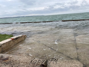 Море наступило на сушу. Набережная в Керчи погружается в воду значительно больше чем обычно - передает Керчь.ФМ.