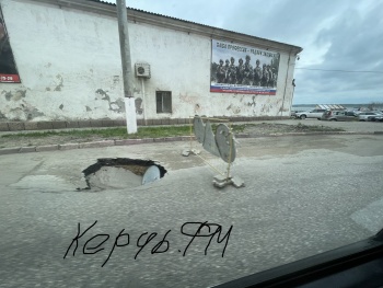Провал на Адмиралтейском проезде в месте ведения водовода стал еще больше. Провал огорожен знаком «ремонтные работы». Размер провала больше метра, - передает Керчь.ФМ.
