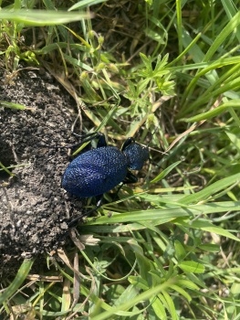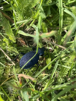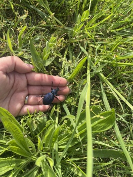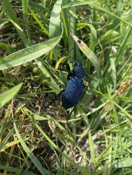 Крымска жужелица - один из самых больших жуков Крыма. Его очень трудно встретить, так как этот красивый жук находится по угрозой исчезновения и занесен в Красную книгу. Нам повезло не только близко с ним познакомиться, но и не испугать его. В случае опасности жук выстреливает едкой жидкостью с резким запахом. Дальность такого полета от 2 метров, поэтому ничего не стоит попасть в человеку в любопытные глаза. После такого контакта перцовый баллончик покажется детской забавой.
