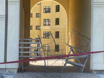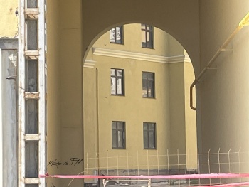С момента, когда мы рассказали о проблемах на объекте прошло 2 месяца. Изменений на площадке никаких не произошло, если не считать того, что его вновь подключили к электроснабжению, а территорию вокруг обмотали сигнальной лентой с надписью «осторожно кабель» и забаррикадировали входы во внутренний двор. Как были разбитые окна техэтажа, так разбитыми и остались, как не было там строителей, так и нет.