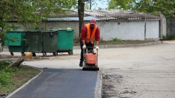 В Керчи приступили к асфальтированию пешеходных дорожек, расположенных вдоль ул. Воинов Интернационалистов.