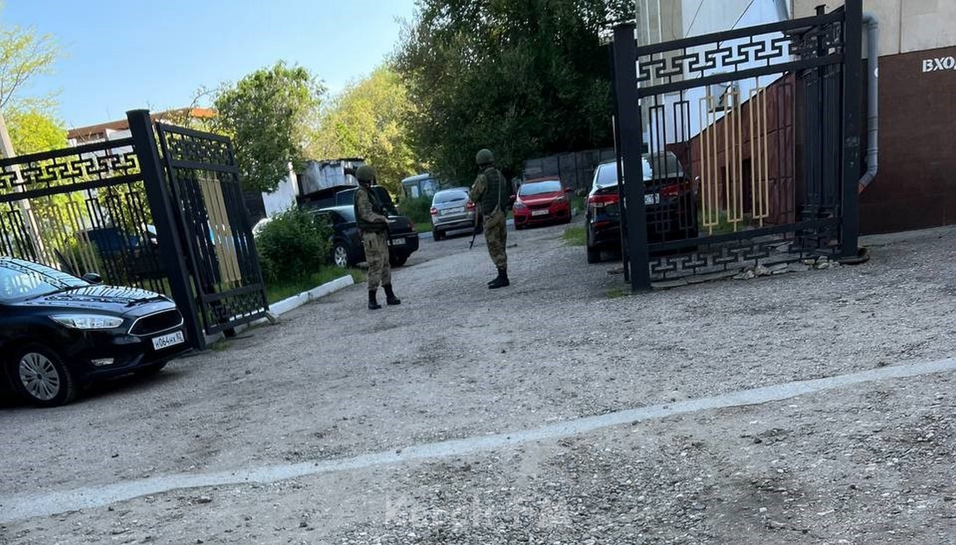 Пока шло мероприятие все входы и выходы в здание охраняли автоматчики в полной боевой экипировке.