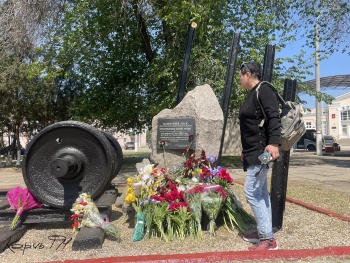 Представители администрации с фотокамерами появились к обеду. И нисколько не обратили внимания на то, что прямо над памятником висит сухая огромная отломанная ветка. У них по графику сегодня возложения.