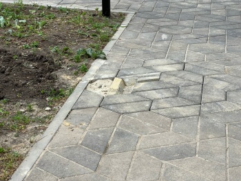 Но, видимо, свершилось чудо, и клумбу закопали, а плитку вернули на место. Оценить этот «прекрасный» ремонт можно по фото.