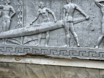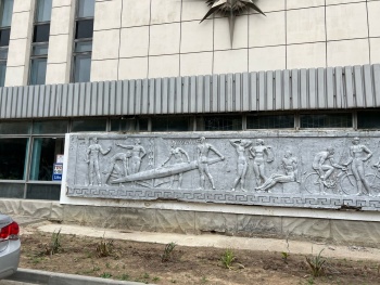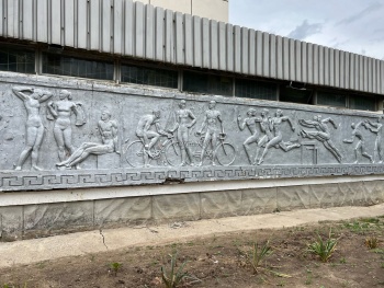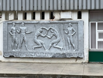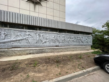 Так, кроме текущей крыши, старых окон и отсутствия ремонта внутри десятилетиями, уже начал рушиться барельеф на фасаде здания. Керчане переживают, что в один момент он разобьется о плитку.
