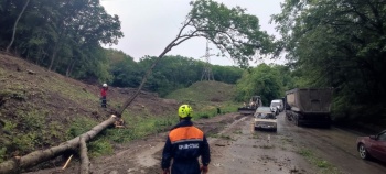 К месту происшествия выехали сотрудники Судакского АСО ГКУ РК «КРЫМ-СПАС». По прибытии, спасатели выяснили, что вследствие размытия грунта дерево упало на, проезжающий мимо, рейсовый автобус «Симферополь - Судак». Сотрудники чрезвычайного ведомства, при помощи механизированного инструмента, провели комплекс работ по арбористике. В результате чего аварийное дерево было распилено и убрано с проезжей части. Пострадавших нет.
