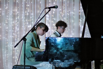 В качестве подарка коллегам по школе учащиеся музыкального отделения устроили концерт из своих лучших номеров.