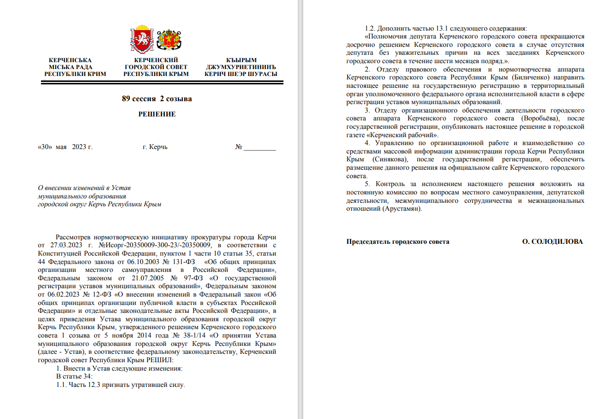 Депутаты горсовета приняли сегодня решение, которым внесли изменения в Устав города. Особенно на жизнь керчан это изменение не повлияет собственно не повлияет никак, но лишить кое-кого статуса может, - передает Керчь.ФМ.