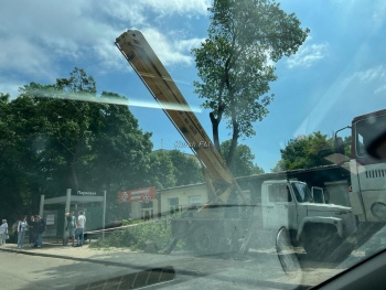 В Керчи на остановке «Парковая» с утра 31 мая идёт обрезка деревьев. Для этого к остановке загнали тяжелую технику. Место работ оградили сигнальной лентой, - передает  Керчь.ФМ.
